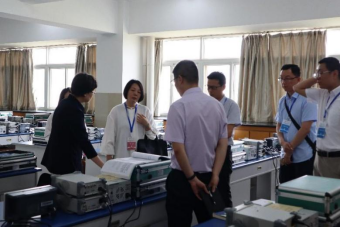 专家考察实验室并认真查看学生实验报告
