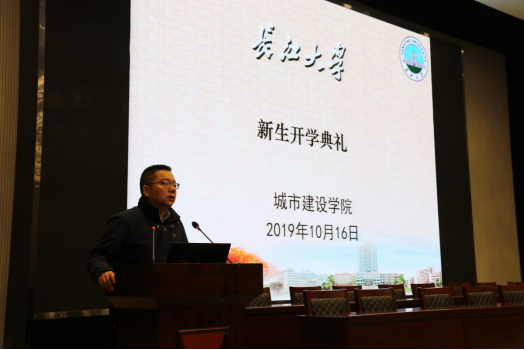会上,曾磊院长向来到长大选择城建学院求学成才的莘莘学子表示热烈欢迎。接着,他作了系统全面的学院介绍,并重点讲解了建筑学、城乡规划、土木工程、给排水科学与工程和工程管理五大专业的关系。他讲到:“城建学院是集多学科于一体的,它将理工与人文结合、科学与艺术结合、研究与实践结合、教学与创新结合,并且我们追逐行业前沿,服务地方经济。”随后他又在教学特色与建设成效方面进行了介绍并且指出学院在实施“工学交替”模式,促进学生全面发展。最后,他寄语2019级新同学:要心怀感恩、要坚定自信、要做好人生规划、要勤奋刻苦学习。