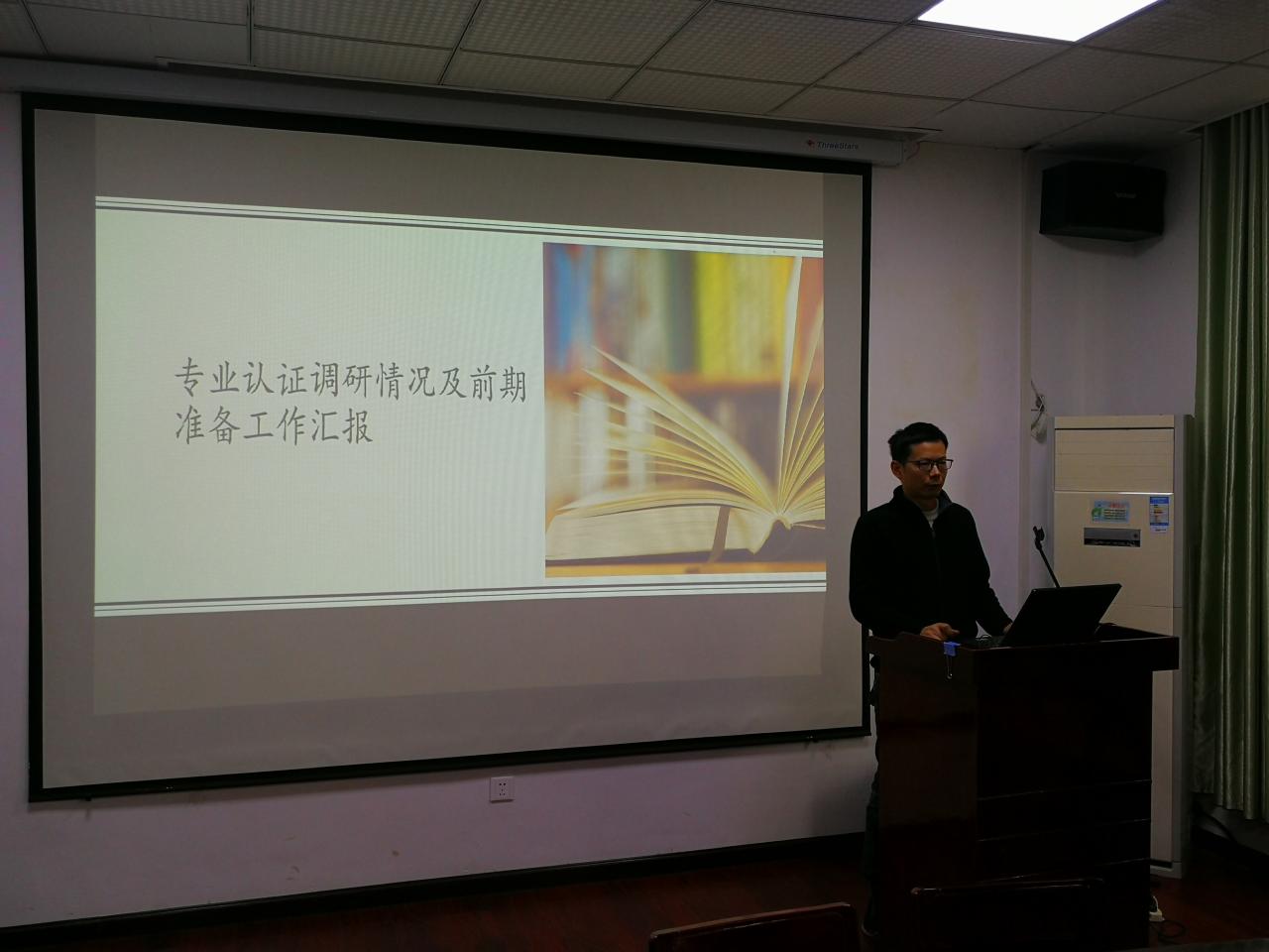 给排水科学与工程系系主任黄向阳老师首先介绍了前期工作:给排水科学工程系利用前期时间对开办有该专业并已通过专业认证的安徽工业大学和西安建筑大学进行了调研,结合两所学校并对比我校给排水专业的情况提出了一些建议:修订培养方案,实验室按评估要求进行配置并整合,实验设备及耗材的采购,招聘专任教师及专职实验教师,毕业设计、课程设计、相关手册、规范的采购,学生满意度调查问卷的制定等向与会人员做了详尽的介绍。