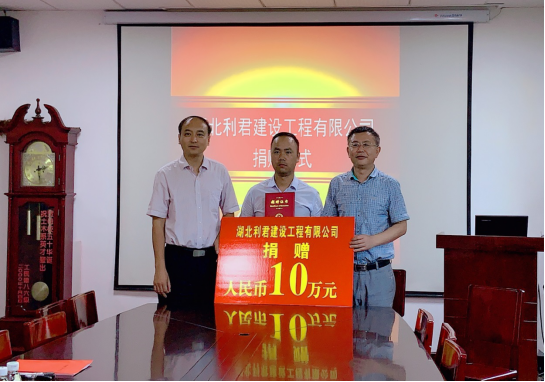 “奉献爱心、捐资助学”,7月2日下午,湖北利君建设工程有限公司捐赠仪式在城建学院9教208会议室举行。公司总经理向丽军、学校教育发展基金会副理事长兼秘书长孙启军、城建学院院长杜国锋共同签署了捐赠协议。城建学院副院长张继承、校友工作办公室宣传部长何曼参加了会议。