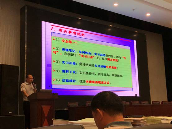 土木工程系系主任肖桃李老师就实习目标与实习任务、实习阶段与实习方式、实习安排与具体组织、考核办法与评分标准等方面介绍了工学交替的安排与要求,并分发了实习日志,实习指导书等相关资料。随后孔祥国老师就工程地质实习提出了相应的考核办法与要求。