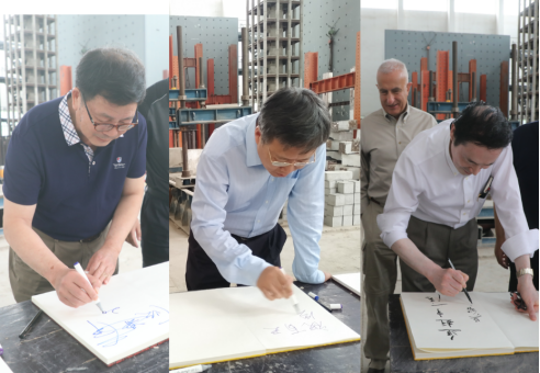 5月18日下午两点,在城建学院院长杜国锋、党委书记徐联、副院长曾磊等院领导的陪同下,中国工程院院士欧进萍、中国科学院院士滕锦光、日本工程院院士吴智深、澳大利亚工程院院士郝洪、美国伊利诺伊大学芝加哥分校教授Farhad Ansari、大连理工大学李宏男教授等国内外顶级专家学者应邀参观指导城建学院土木工程实验教学中心和土木工程防灾减灾中心,并欣然为学院师生题词。