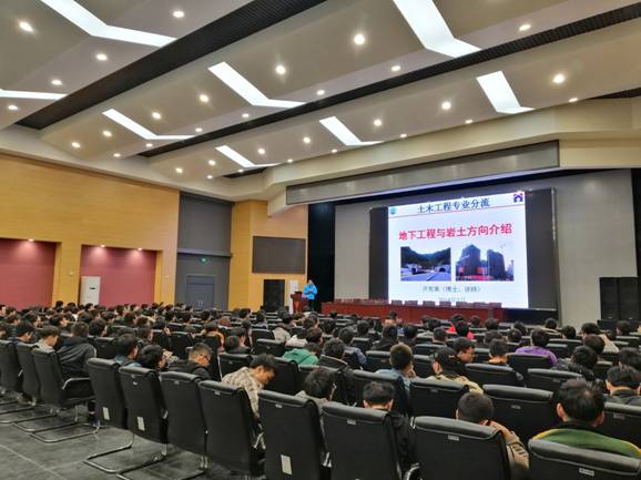 随后,建筑系、城乡规划系、工程管理系老师带领建筑类、工程管理专业学生到1056报告厅进行宣讲。