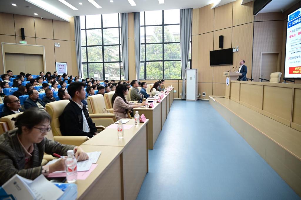 (通讯员 杨洁晶)为进一步加强我院研究生导师队伍建设,提升研究生培养质量,10月26日下午15:00,我院举行2024级硕士研究生见面会暨2024年研究生导师培训会。会议在11教学术报告厅召开,学院党委书记谌姿、院长肖桃李、副书记周洁如、副院长黄向阳、院长助理赵云峰、各系主任、全体硕士研究生导师、2024级全体研究生参加了此次培训。