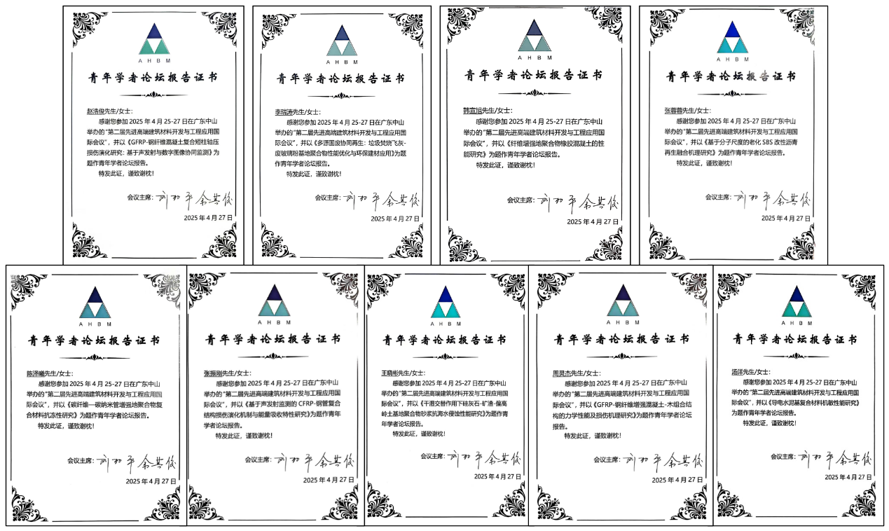 参会学生们也积极展示了他们在建筑材料领域的创新性研究成果。报告内容涵盖了多个方向,包括碳纤维-碳纳米管增强地聚合物复合材料的抗冻性研究、导电水泥基复合材料的机敏性能研究、干湿交替作用下硅灰石-矿渣-偏高岭土基地聚合物砂浆的抗海水侵蚀性能研究等。这些研究不仅展示了我院学生扎实的科研能力,也体现了他们在建筑材料创新与环保领域的深刻思考。