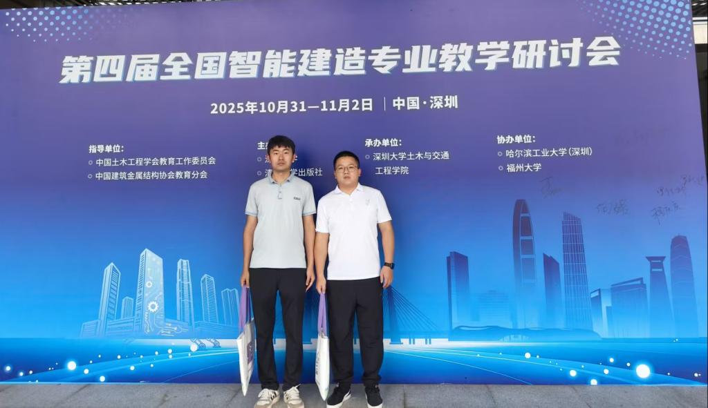 (通讯员 周凯)10月31日至11月2日,我院周凯、刘焱华副教授赴深圳参加“第四届全国智能建造专业教学研讨会”。本次会议由深圳大学和清华大学出版社联合主办,旨在聚焦智能建造专业建设中的难点与痛点,凝聚共识、共谋发展,推动专业教育高质量内涵式发展。来自全国百余所高校、科研机构及建筑科技企业的专家学者齐聚一堂,围绕智能建造技术发展、课程体系构建、实践教学创新、跨学科人才培养以及产学研协同机制等核心议题,开展深入交流与研讨。