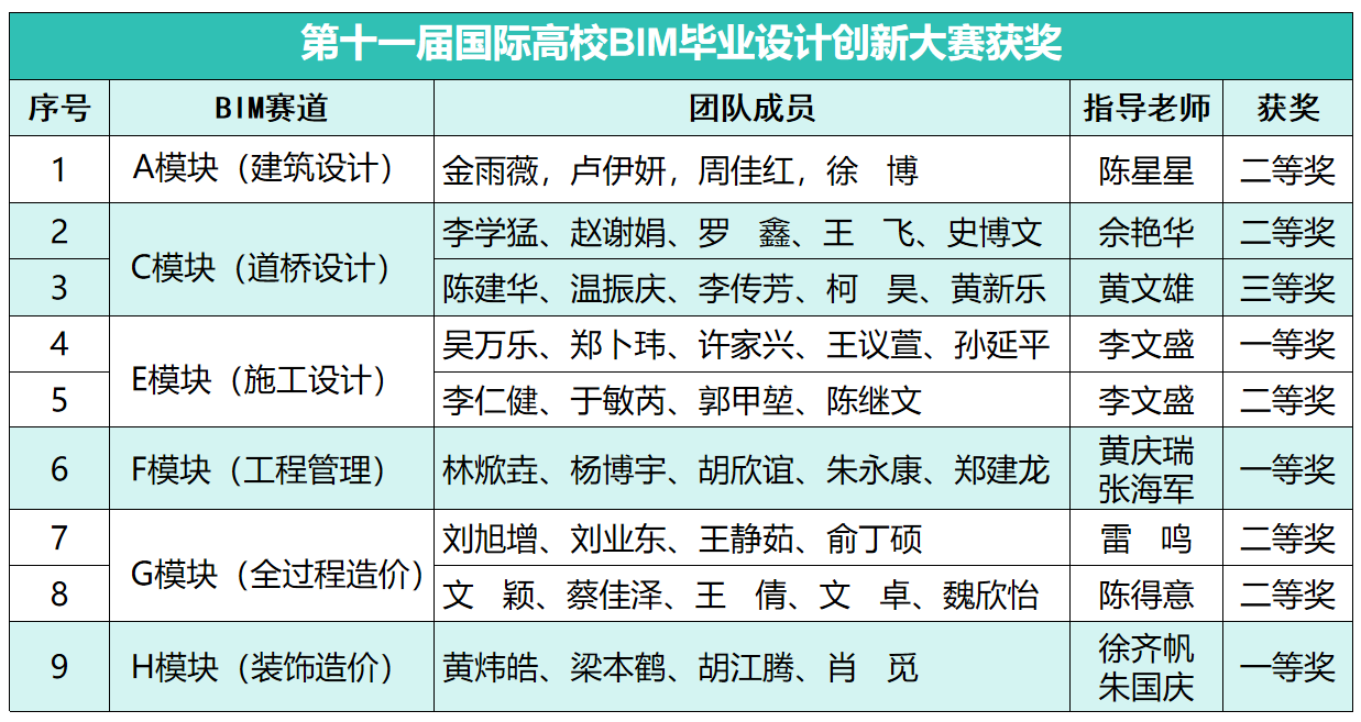 近期,第十一届国际高校BIM毕业设计创新大赛获奖名单揭晓。我校获全国团队一等奖3项、二等奖5项、三等奖1项、创我校在该项赛事中的历史最好成绩。 赛事通过多赛道、全流程的竞赛机制,系统性评估高校在基建信息化人才培养与智能建造领域的综合水平。大赛自2024年9月启动以来,全国共有 700余所高校、1.4万余支队伍、8万余名师生参赛,共计提交参赛作品4400余份。 自本届赛事启动以来,城市建设学院高度重视,坚持“赛教融合、以赛促学、以赛促教”的理念,提前策划,积极组织学生参加校园赛和海选赛的选拔和考试。在决赛作品提交阶段,多次集中师资力量对各参赛团队作品进行系统化培训,赛事相关的毕业设计选题来自教师科研课题和社会实际工程案例。 据悉,BIM毕业设计创新大赛是中国土木工程学会主办,广联达科技有限公司联合主办,东南大学和华南理工大学等承办,是目前全国规模最大、涵盖专业最广的土木建筑类专业赛事之一,旨在推动建筑产业数字化、智能化转型升级,落实国家关于“加快数字化发展、建设数字中国”的战略部署,培养建筑行业数字化人才。已连续多年入选教育部“普通高校大学生竞赛排行榜”。