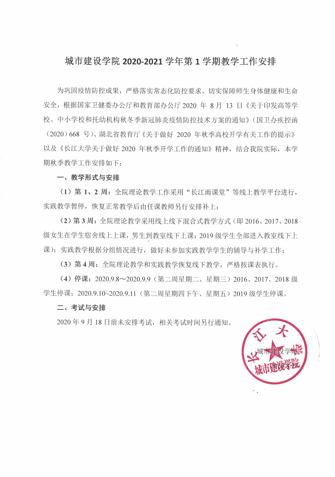 yl9193永利集团2020-2021学年第1学期教学工作安排