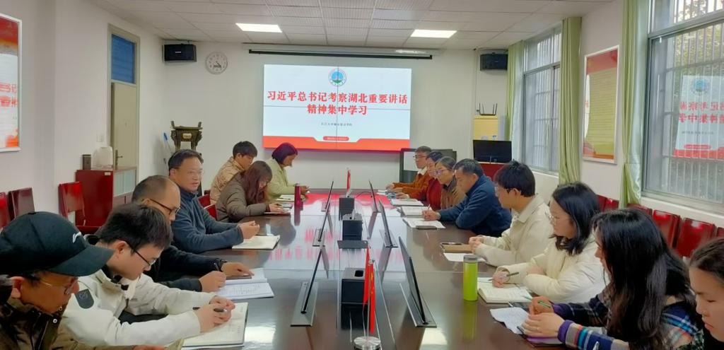 同时,与会成员还就习近平总书记考察湖北重要讲话精神展开专题学习和交流研讨。党委书记谌姿传达了上级部门关于学习宣传贯彻好习近平总书记考察湖北重要讲话精神的最新要求,并带领大家深入学习了省委、市委、校党委传达学习习近平总书记考察湖北重要讲话精神的会议精神。院长助理赵云峰,辅导员刘安琪、杜琛结合各自工作实际,从研究生培养、学生工作开展等方面交流了工作感悟和体会。