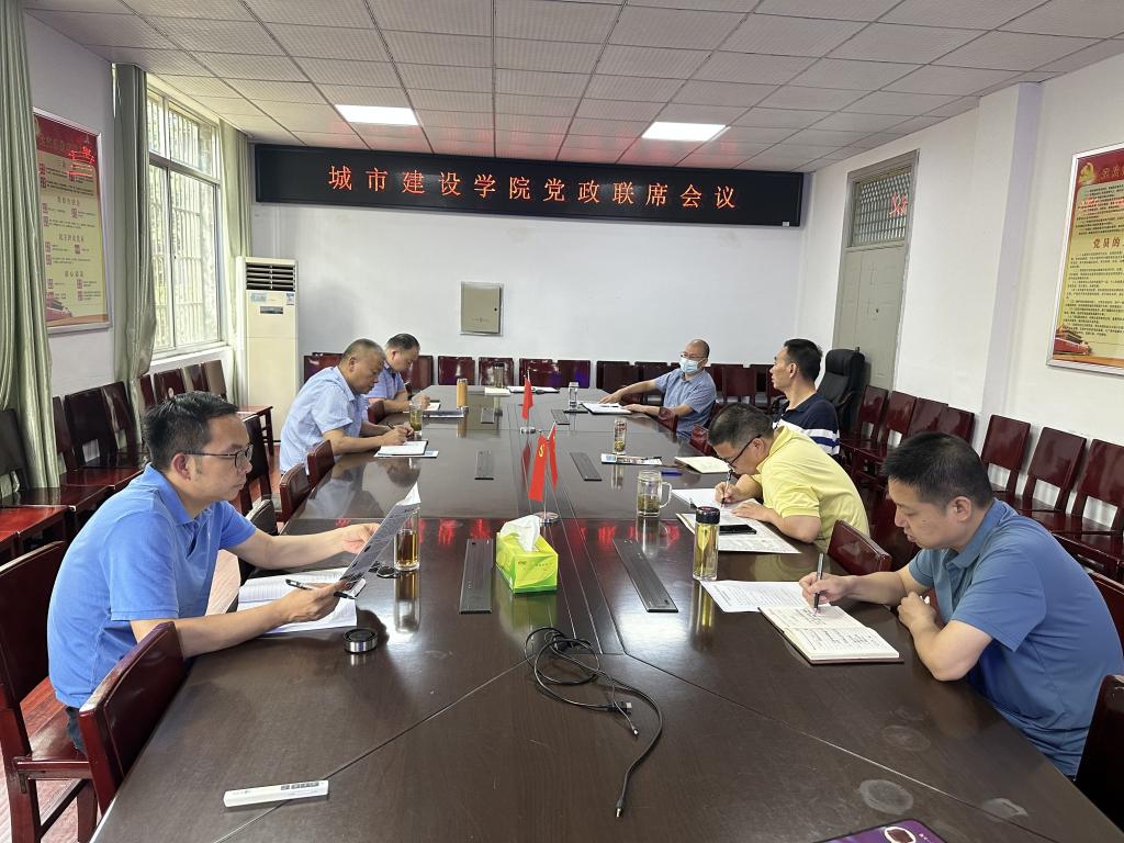 2023年6月19日,城建学院党委中心组成员在9教208会议室开展6月政治理论学习,分党委书记彭飞主持学习活动。