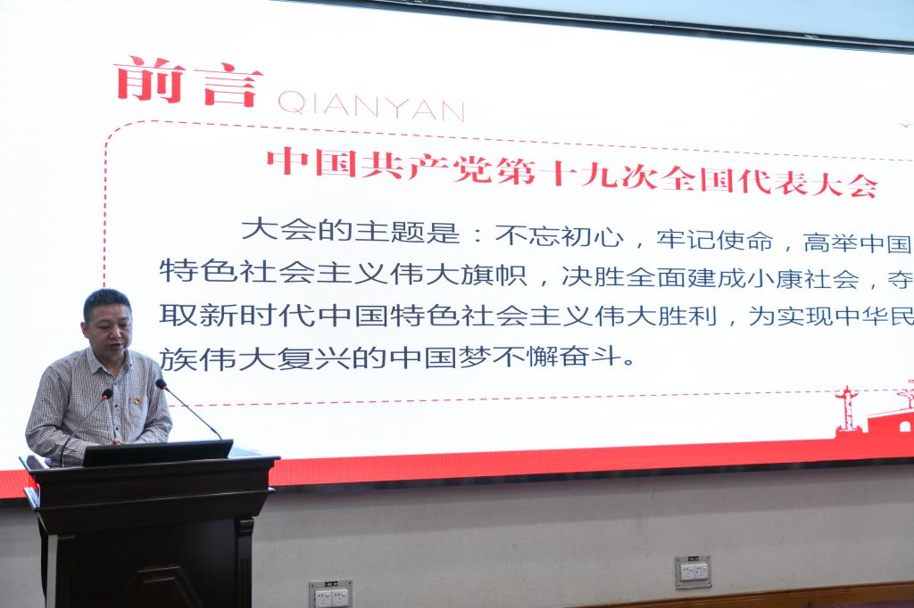 秦良斌书记从中国共产党人实现初心和使命的奋斗历程、中国共产党人的初心和使命的重大意义、为实现中国共产党人的初心和使命而奋斗三个方面为出发点展开讲述。他以历史为依托,讲述了中国共产党初心与使命的确立原由。他指出,中国共产党人的初心和使命彰显了中国共产党永远不变的性质和宗旨,凸显了中国共产党始终不变的历史担当,是激励着中国共产党不断前进的根本动力。而筑牢信仰之基、补足精神之钙、把稳思想之舵,不断增强“四个意识”、坚定“四个自信”、聚焦“四个伟大”,做到“两个维护”,则是实现中国共产党人的初心和使命,实现中华民族伟大复兴的中国梦的有力保障。