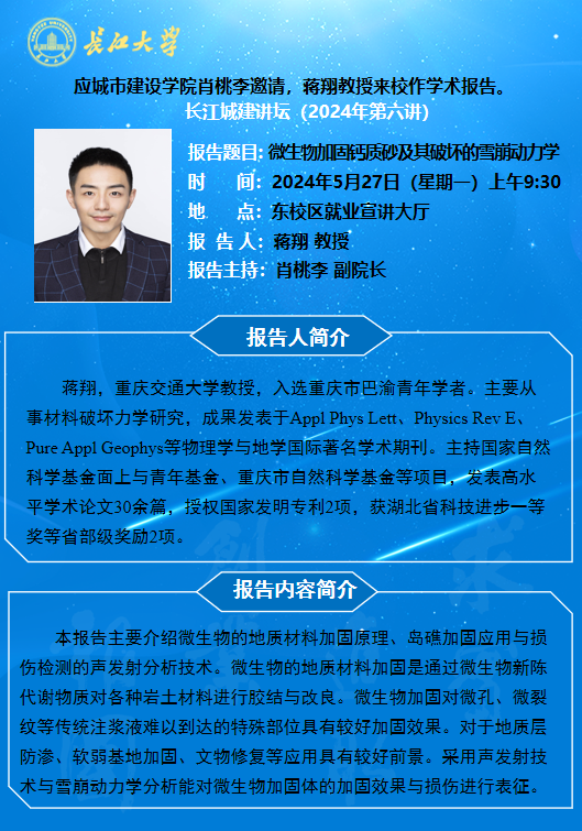 长江城建讲坛2024年第六讲:微生物加固钙质砂及其破坏的雪崩动力学