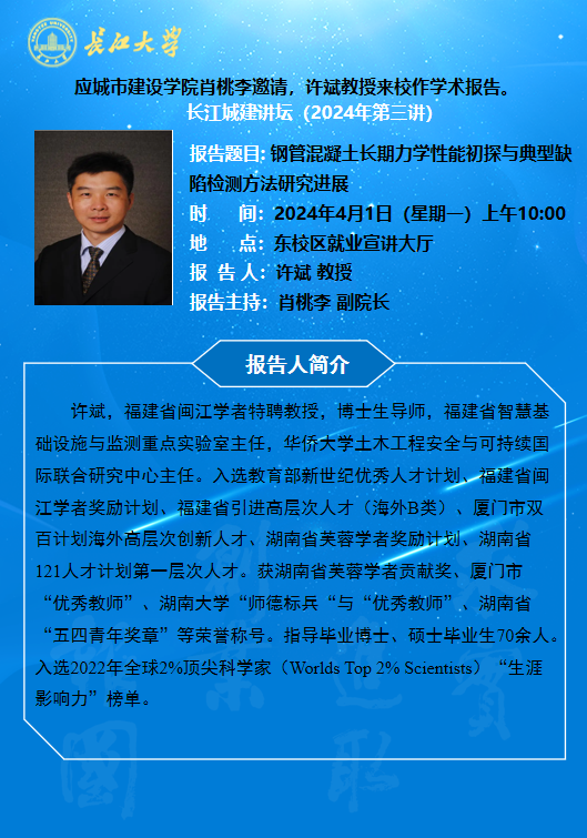 长江城建讲坛2024年第三讲:钢管混凝土长期力学性能初探与典型缺陷检测方法研究进展
