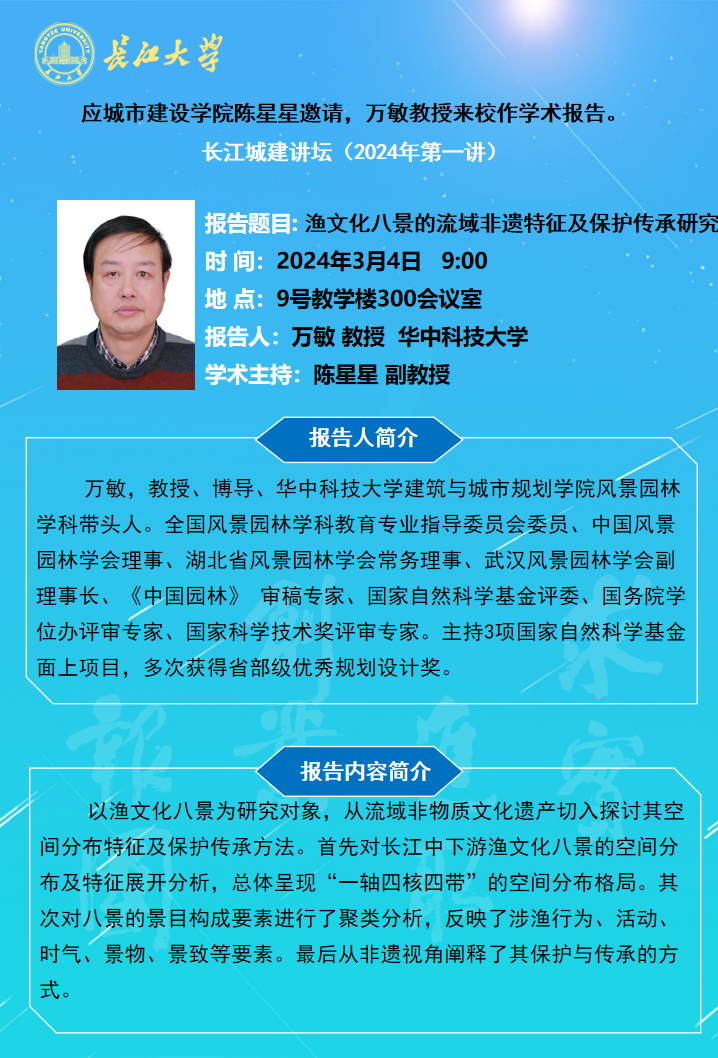 长江城建讲坛2024年第一讲:渔文化八景的流域非遗特征及保护传承研究