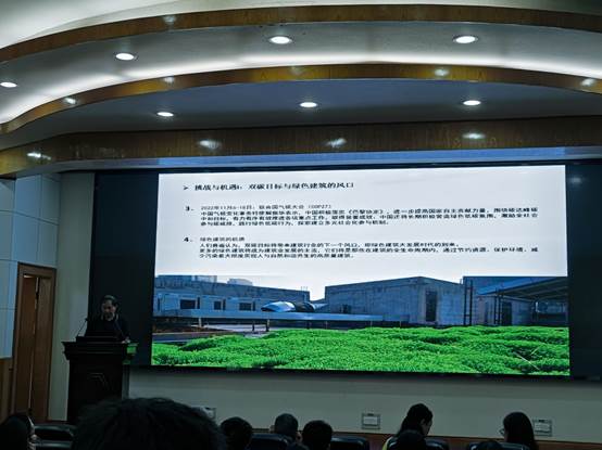 肖伟教授从双碳目标与绿色建筑的风口,地域传统建筑文化传承受到空前重视的时代背景引入本次讲座主题,并以汉口平和打包厂修缮与再利用工程中的绿色可持续设计实践,巴公房子,苏州平江古城建新巷30号,国际建筑师协会(UIA)第二十八届世界建筑师大会——中国馆策展等工程实例向师生诠释了“绿色共享 文化传播”的实现。