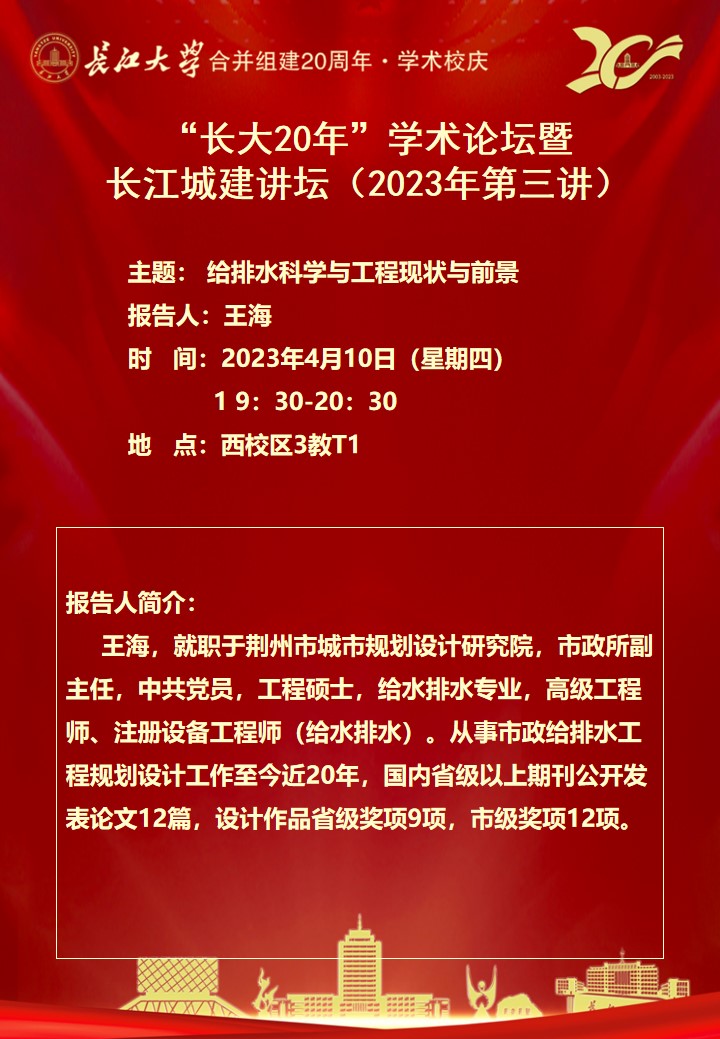 长大20年学术论坛暨长江城建论坛(2023年第三讲)给排水科学与工程现状与前景