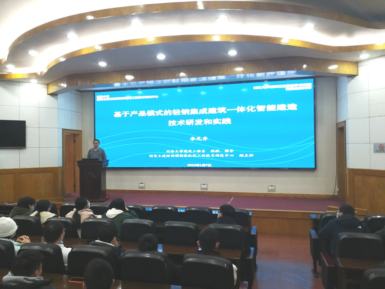 1月7日下午,我院在11教报告厅举行了2022年长江城建讲坛第一讲的学术讲座,上海同济大学教授、博导,国家土建结构预制装配化工程技术研究中心副主任李元齐教授做客讲坛,并为学院师生作了题为“基于产品模式的轻钢集成建筑一体化智能建造技术研发和实践”的学术报告,学院100余名师生参加了活动。