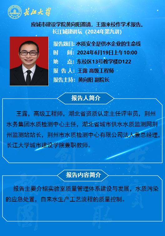 长江城建讲坛2024年第九讲:水质安全是供水企业的生命线