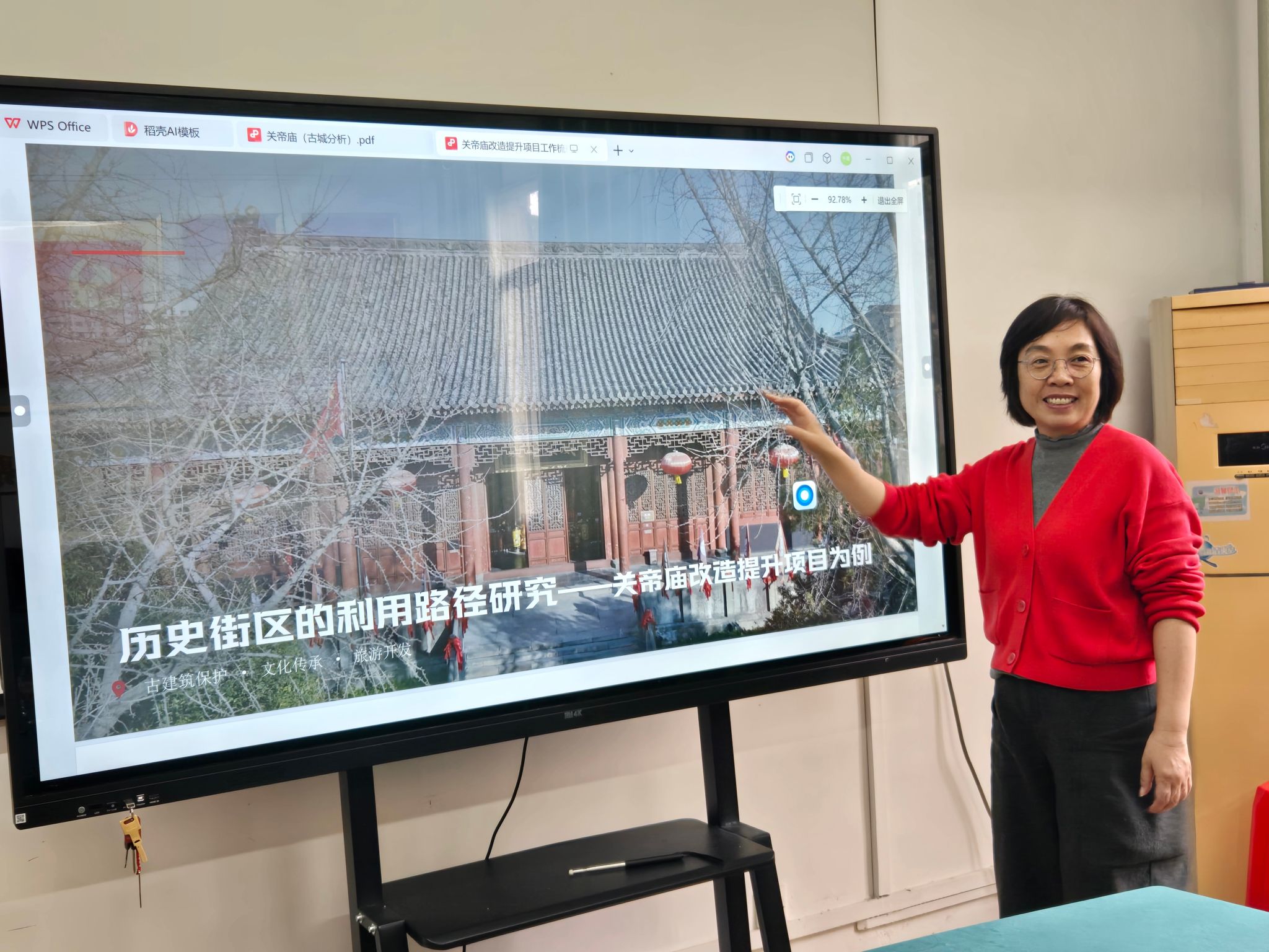 报告伊始,彭蓉副教授依托长期历史建筑研究积累,立足荆州旅游业快速发展背景下历史街区更新利用的实践需求,以关帝庙修缮所引发的历史街区更新问题为切入点,多维度剖析当前历史街区更新过程中的现实矛盾,并结合实践经验针对性提出科学可行的更新策略,为历史建筑保护与街区活化提供了新思路。