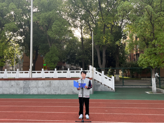 升旗仪式结束后,学生代表土木类32301班郝子木以《传承五四精神,绽放青春光彩》为题进行国旗下演讲,他呼吁全体同学,作为中国青年应该在这个充满机遇和挑战的时代里,以五四精神为指引,以饱满坚定的信念投身学习生活,以积极务实的作风参与社会实践,为实现中国梦贡献青春力量,让青春在奋斗中绽放绚丽光彩。