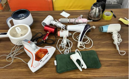 在东、西校区学生宿舍,老师们分别进入各年级寝室,对寝室用电、物品堆积、消防通道进行了细致的检查,针对寝室内使用违规电器、乱拉电线等一系列安全问题展开重点排查,现场收缴大功率违规电器,并对相关宿舍进行批评教育。