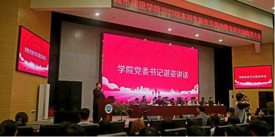(通讯员 勾彤 唐宏妍/文 李东源 陈瑾/摄)新学期,新面孔,新梦想。10月19日下午,城建学院2023级新生见面会在我校西校区农科大楼1058报告厅举行。院党委书记谌姿、副院长肖桃李、副院长黄向阳、院党委副书记周洁如出席本次会议,各系教授、系主任、新生班主任、全体辅导员、2023级全体本科生参加会议。大会由院党委副书记周洁如主持。
