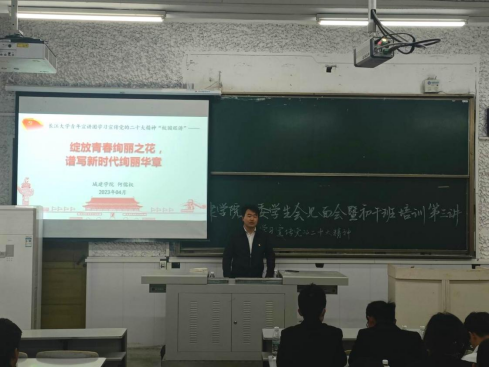(通讯员 张剑琳 郭甲堃)绽放青春绚丽之花,谱写新时代绚丽华章。为进一步提升城建学院学生干部的思想水平与执行能力,4月6日下午,学院在西校区3教T1教室面向主要学生干部进行党的二十大精神宣讲,永利集团青年宣讲团成员、院团委副书记何儒权对党的二十大精神进行了宣讲,党建就业专干胡冰恒、22级辅导员杜琛、第十九届团委学生会全体成员、22级初干班学员及青马学习小组参加本次培训。