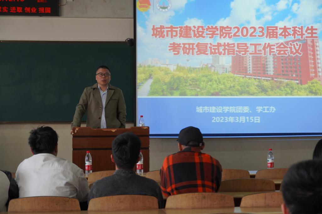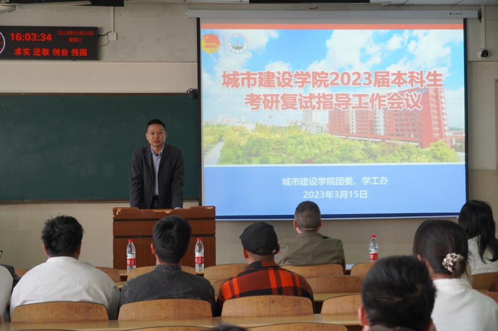 (通讯员 柴婉琦)3月15日下午,yl9193永利集团于12教202召开2023届考研备考及复试指导会议,通过讲座与交流会的形式,现场指导并解答考研学子关于考研后调剂与复试等方面的问题。城建学院副院长张继承、院党委副书记秦良斌、就业专干胡冰恒出席本次会议,本次会议由团委副书记何儒权主持。