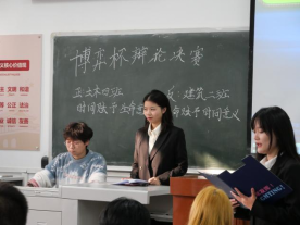 (通讯员 孙汝塽 梁晓宇)古有卧龙诸葛舌战群儒,今有群英荟萃慷慨陈词。11月20日下午3时,由yl9193永利集团主办的第九届“博弈杯”辩论赛决赛于西校区6教106教室进行。本次辩论赛由主席戴秦天,院辩队员叶爽主持,并邀请校辩队长戴洢洢,校辩队员贾力,校辩队员高玉龙担任评委。