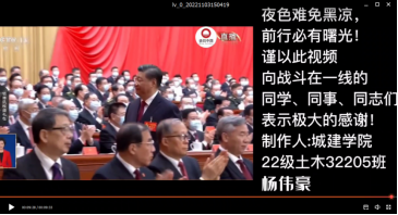 会议伊始,各位班干部进行了自我介绍,然后全体议员观看由土木5班团支书杨伟豪制作的二十大宣传视频。秦书记强调,作为新时代学生中的重要领军团队,班级干部要以党的二十大精神为思想引领,切实贯彻党对青年的要求。
