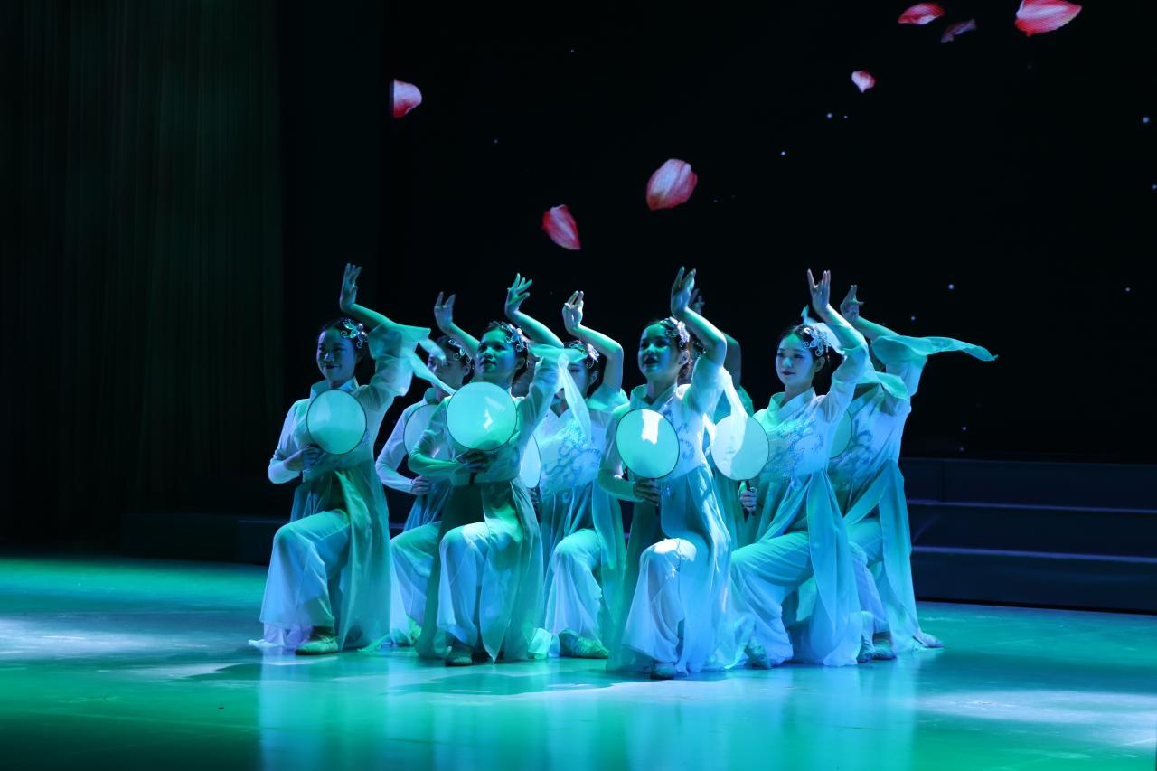 随后文艺汇演在激情动感的乐队演奏《zombie》中拉开了序幕,音符悦动,洋洋盈耳。接下来的汇演节目融合歌曲舞蹈、诗歌朗诵、乐队演奏、小品情景剧等多种形式,精彩纷呈。街舞《play for me》热血澎湃,点燃了观众激情;舞蹈类节目《雨中花》、《红尘客栈》摇曳生姿,仪态万方;周俊老师深情演唱一曲《忘情冷雨夜》,将汇演推向了高潮;小品《青春校园》演绎出长大的一幕幕青春回忆;乐器合奏《权御天下》琴瑟合鸣,融汇中西;诗歌朗诵《请铭记雾重庆》生动的讲述了中国人民对那些永久离我们远去的烈士英雄独有的铭记;由城建学院退役大学生士兵之家精心编排的节目《魂系军营》,描绘了当代军人的血性本色,更是表达了城建学院退役大学生们“退伍不褪色,转身再出征”的铿锵誓言。整场汇演在城建学院老师们的齐舞《我和我的祖国》中圆满落下帷幕。
