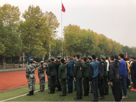 (通讯员:李敏锐)10月14日,清晨7时整,田径场上,雄壮的国歌声中,五星红旗冉冉升起。城建学院退役大学生士兵整齐列队,立正肃立。“敬礼!”他们按照部队的规定,共同面向国旗,着军服的行举手礼,着便服的行注目礼。升国旗、唱国歌,使全体在场人员切身体验了一次爱国主义现场教育,感受国旗的庄严和肃穆,感受国家的伟大,激发他们的爱国热情,增强爱国主义情感。