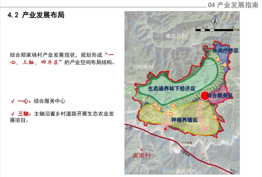 7月12日,团队师生走访了郑家埫村多个家庭,详细了解村庄基本情况、居民生活状况及其对村庄未来发展的期望和建议。结合村庄现状与村民需求,团队成员们详细讨论郑家埫村的乡村规划方案,规划公共服务设施和功能分区,优化道路、排水等设施,结合自然和人文资源发展特色农业和乡村旅游,以绿色发展提升村庄整体形象和居民生活质量。按照该规划方案,郑家埫村将形成“一心,三轴,四片区”的总空间布局结构。