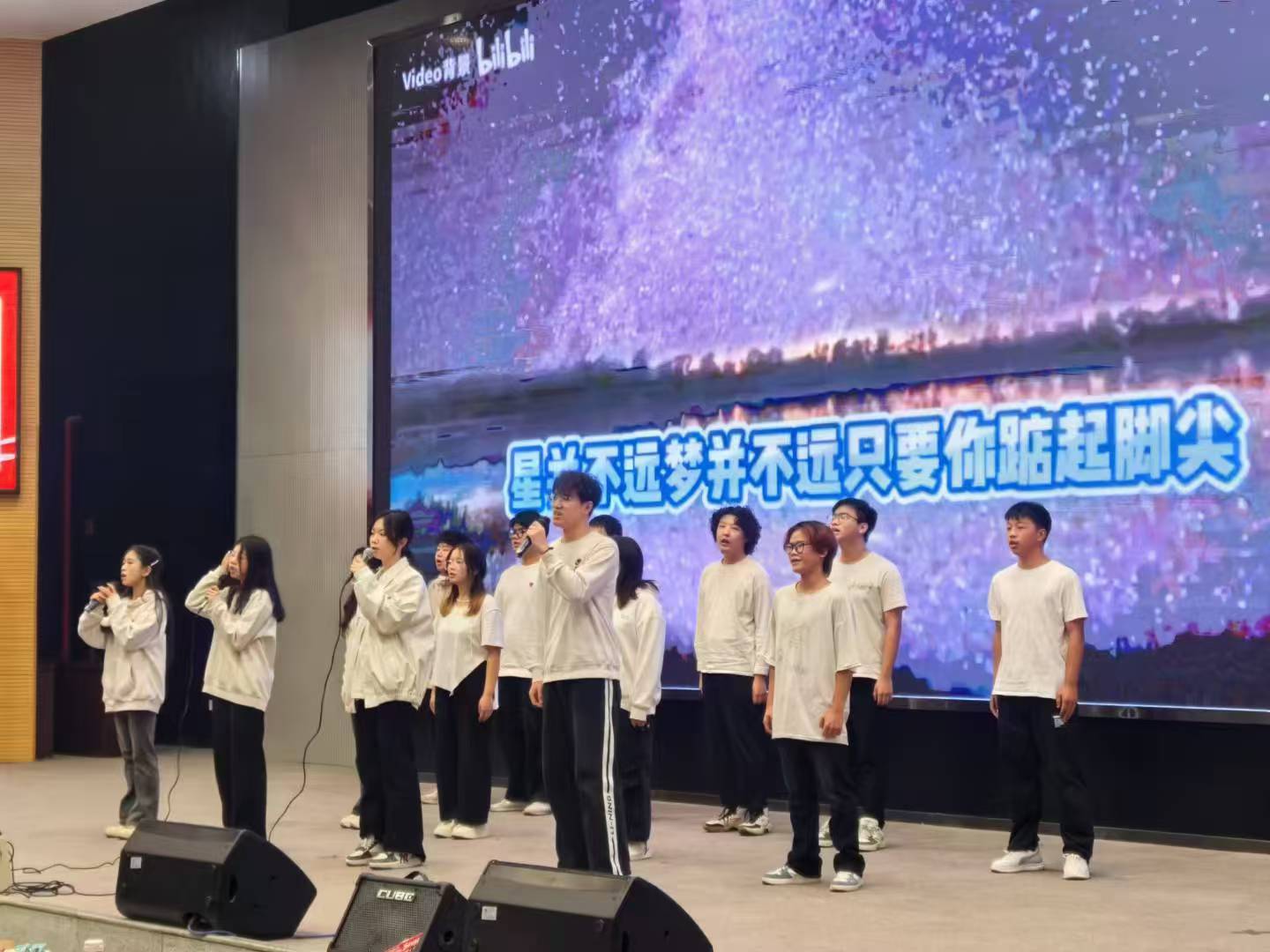 伴随着欢快的音乐,健美操队员们的精彩表演拉开了晚会帷幕。小品《时间都去哪儿》告诫学生惜时如金,拒绝拖延;话剧《觉醒年代》诠释了革命先辈们不懈奋斗的一生;合唱《紫荆花盛开》体现了浓浓的家国情怀;抖空竹、舞蹈串烧等节目更是别出心裁、精彩纷呈。晚会节目将场馆的氛围逐渐推向高潮,观众们沉浸在精彩绝伦的表演中,掌声、欢呼声接连响起。