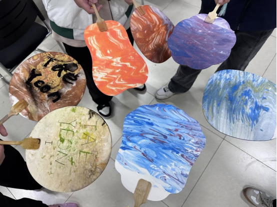 从构图、配色到打磨,同学们每一步都细心操作、耐心等候,在制作中不断交流想法,分享自己的创作心得,并在扇面上题写寓意美好的寄语,每一把漆扇都承载着创作者的辛勤付出和独特创意,展现了他们对非遗文化的理解与感悟。