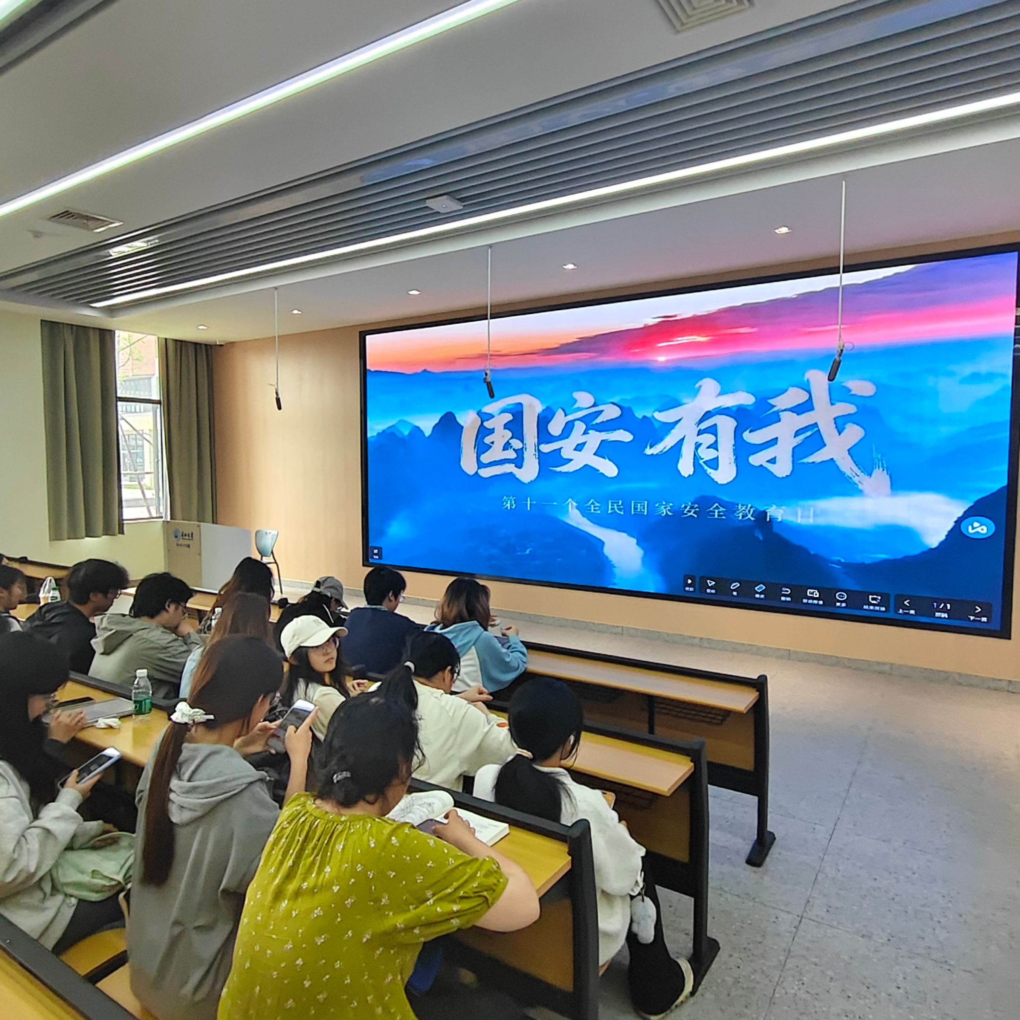 学院对本次活动进行了统一部署与组织,确保各项活动有序推进、取得实效。宣传方面,学院通过9号教学楼电子显示屏循环播放国家安全与反邪教宣传标语,积极营造“国家安全、人人有责”的浓厚氛围。