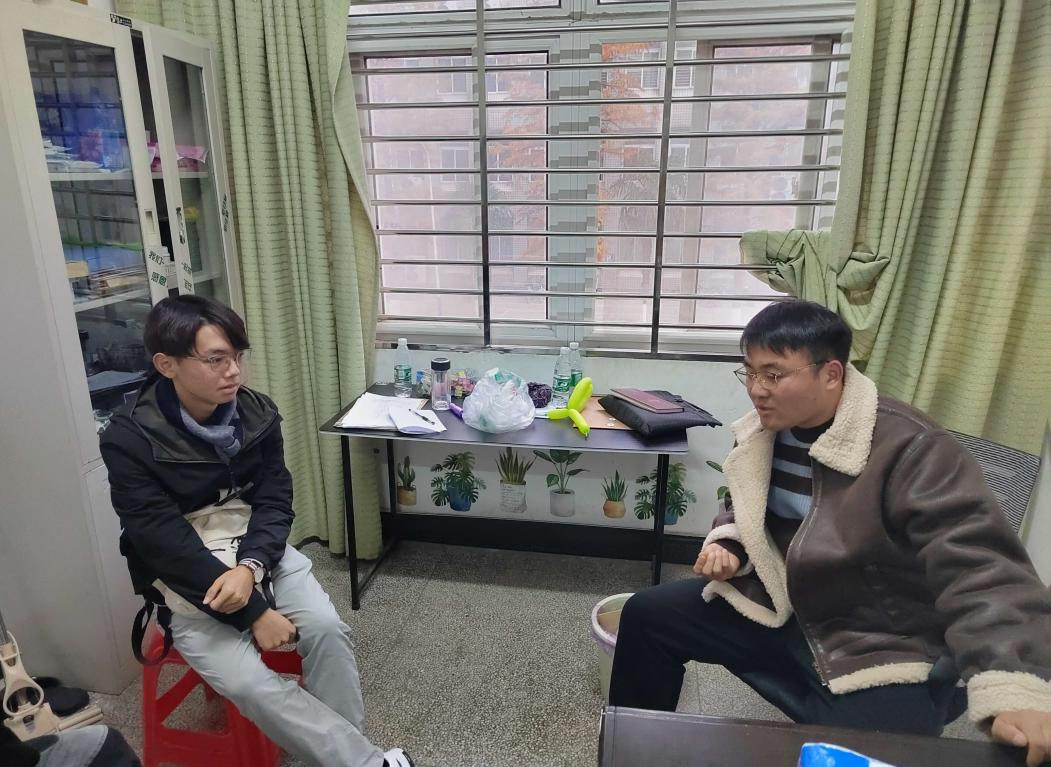 本次咨询活动的指导人是21级年级辅导员魏民生。自通知发出后,前往魏老师办公室寻求帮助的学生络绎不绝。即使在查寝期间,也有学生就职业发展问题,向魏老师咨询解惑。