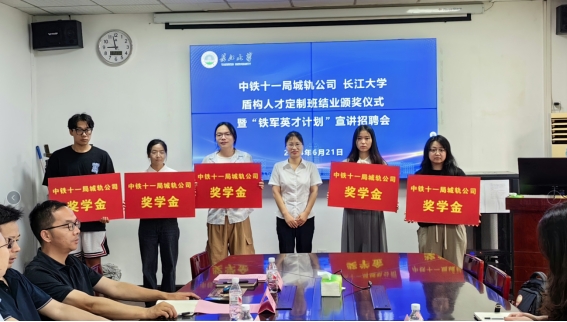 (通讯员 胡欣谊)6月21日上午,yl9193永利集团盾构人才定制班结业颁奖仪式暨“铁军英才计划”宣讲招聘会在东校区九教208会议室举行。中铁十一局集团城轨公司人力资源部蔡枫主任、赵晓敏主任、办公室荣兰主任,yl9193永利集团副院长肖桃李、副院长黄向阳,以及部分教师和学生参加会议。会议由院党委副书记周洁如主持。