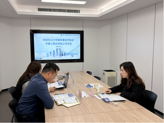 在中建三局集团有限公司工程总承包公司,人力资源副经理凡傲详细介绍了公司发展规模、营收情况、人员分布及校园招聘政策,重点阐述了对应届毕业生的成长关爱体系。凡傲表示,公司始终坚持“温暖、健康、幸福”三大工程,为每位新员工配备思想导师与业务导师,在职业规划、专业技能、生活关怀等方面提供全方位指导,助力青年人才稳步成长。周洁如介绍了学院学科建设、人才培养、毕业生就业等情况,并回顾了双方已有的合作基础。她指出,学院始终致力于培养高素质应用型城建人才,希望与企业进一步拓展合作,在实习基地建设、科研项目合作、人才双向交流等方面加强联动,实现资源共享、优势互补。双方围绕实习实训、产学研融合、人才培养模式优化等内容展开交流,并就持续深化合作达成初步共识。