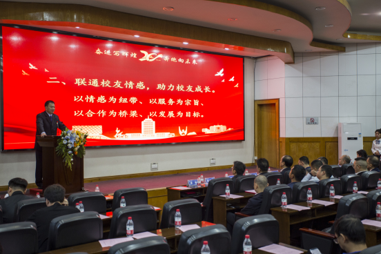 院党委书记谌姿作为学院首届校友会会长发言。他表示,学院校友会将围绕“关注校友、帮助校友、支持校友”的工作目标,凝聚共识、强化服务、加强交流,开创学院和校友情感共同体、价值共同体、命运共同体的工作新局面。