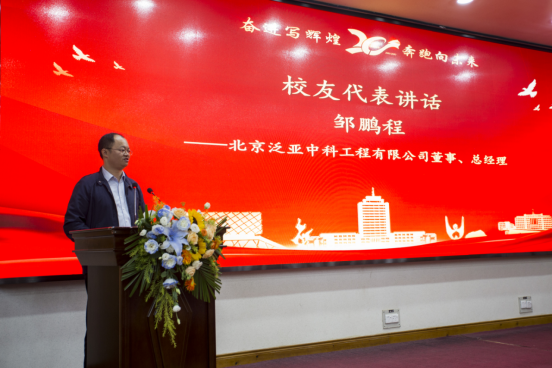 校友代表,广州市国资委派驻广药集团、广州数字科技集团专职董事眭立,北京校友会副会长邹鹏程,荆州市人民政府副秘书长余桥依次讲话。他们深情回顾了往昔在学院的求学生涯,追忆师生情谊、同窗岁月等,纷纷表示将积极回馈母校,助力学校和学院发展。