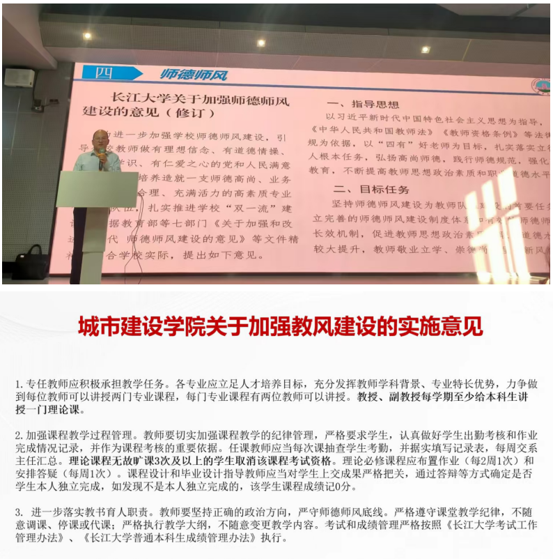 (通讯员 蔡威威)为进一步加强我院师德师风建设,增强教师责任感、使命感,明确师德底线,规范教师职业行为,引导教师落实立德树人的根本任务。2024年,城建学院以“师德师风”建设为着力点,成立师德师风建设领导小组,制定师德师风管理办法,完成师德师风建设年度工作计划,收到较好成效。