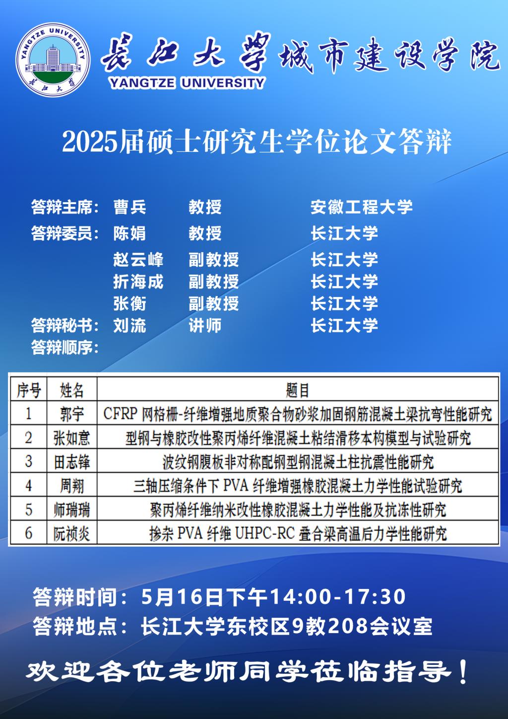 yl9193永利集团2025届硕士研究生学位论文答辩公告(四)